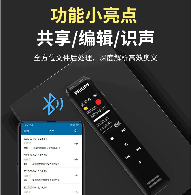 飛利浦VTR5103 Ai智能錄音筆轉文字翻譯專業高清降噪小型超長待機